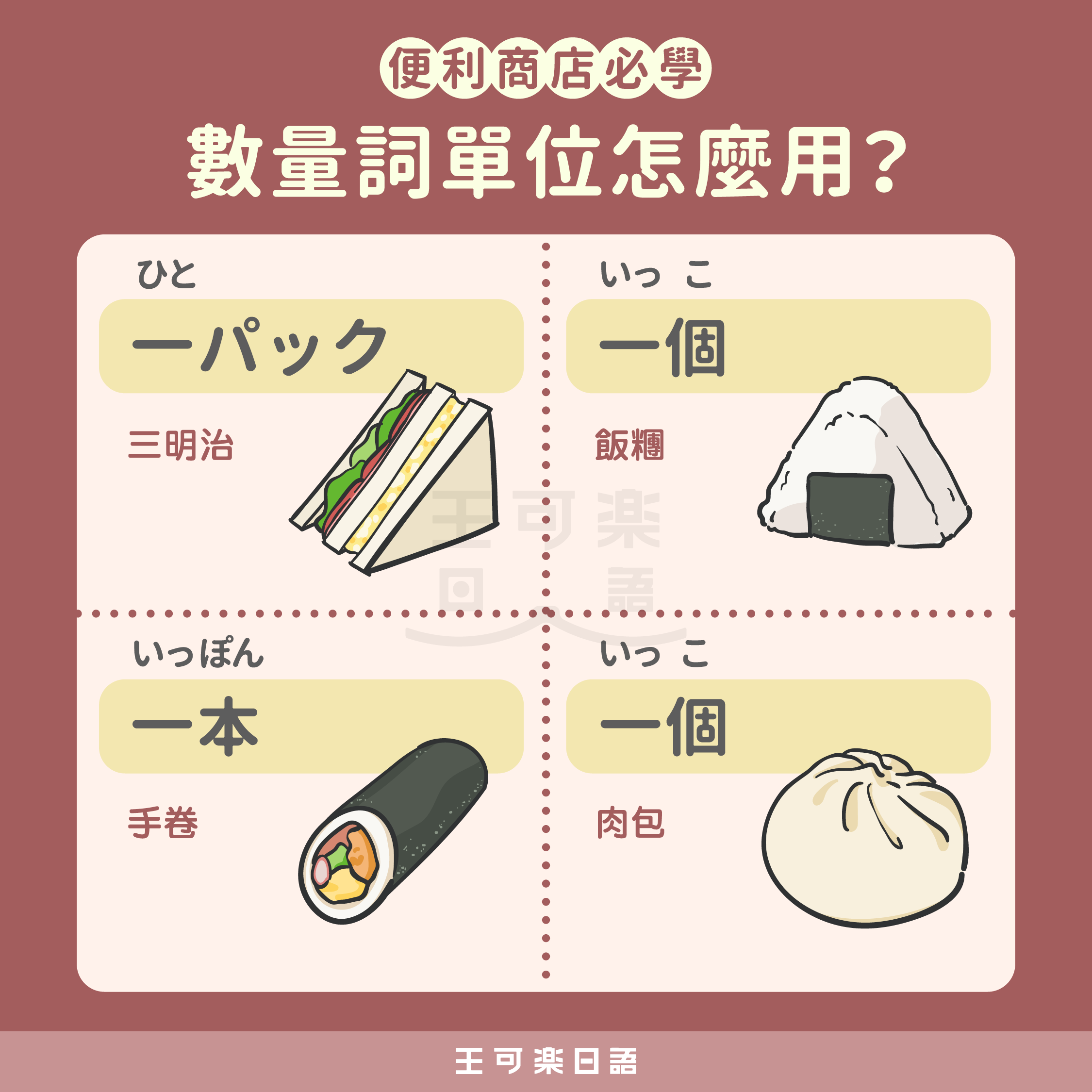 在便利商店買東西時,不只是數「一個、兩個」,日文會依照食物的外型或包裝,搭配不同的數量詞。來看看幾個常見的例子吧!