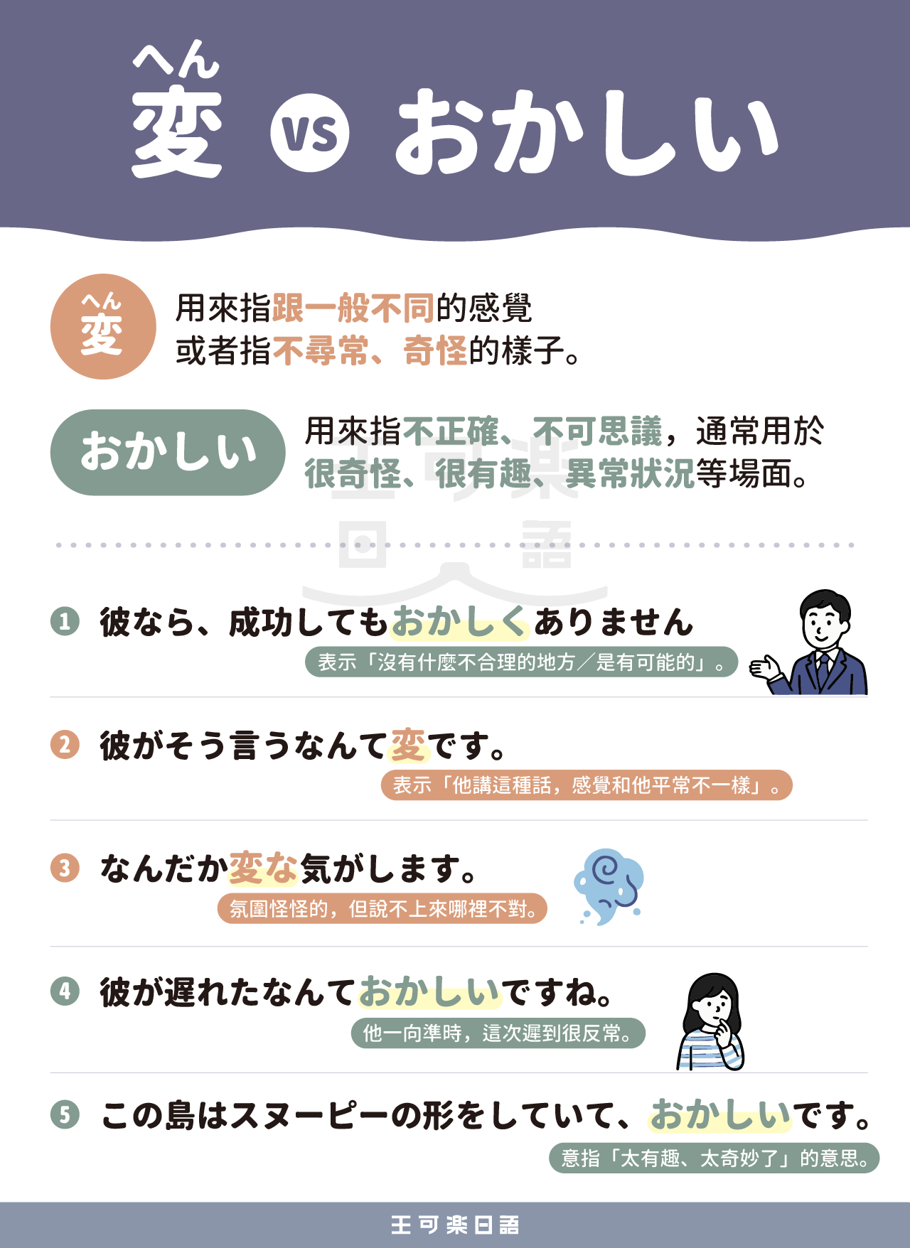「変」和「おかしい」常被拿來形容「怪、異常」,但語感其實不同。