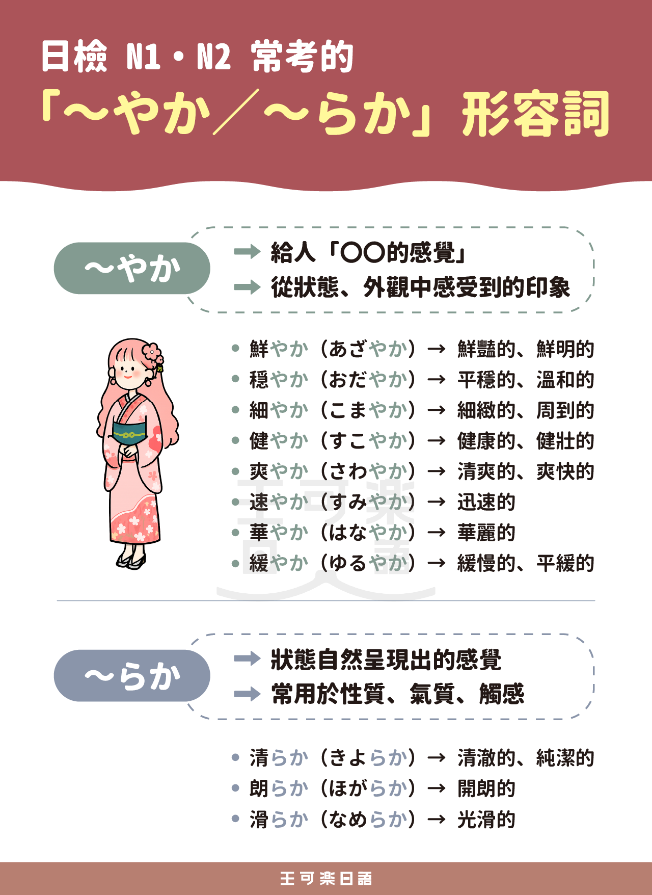 日檢 N1・N2 常考的「~やか/~らか」形容詞