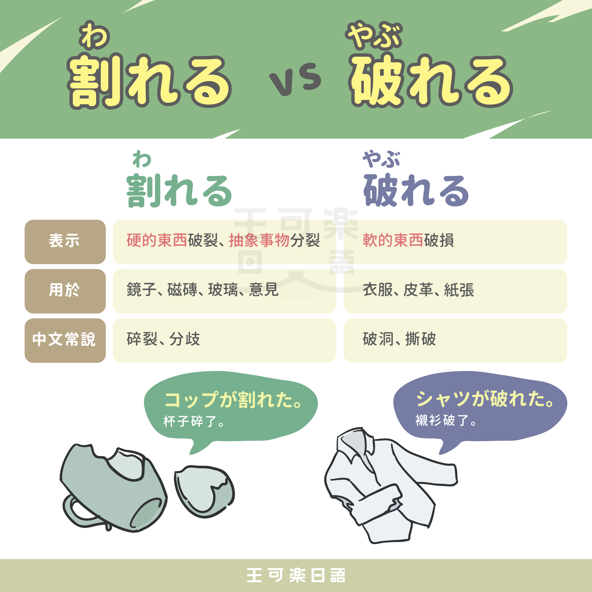 在日文裡,「破れる」和「割れる」都可以翻成「破掉」。
