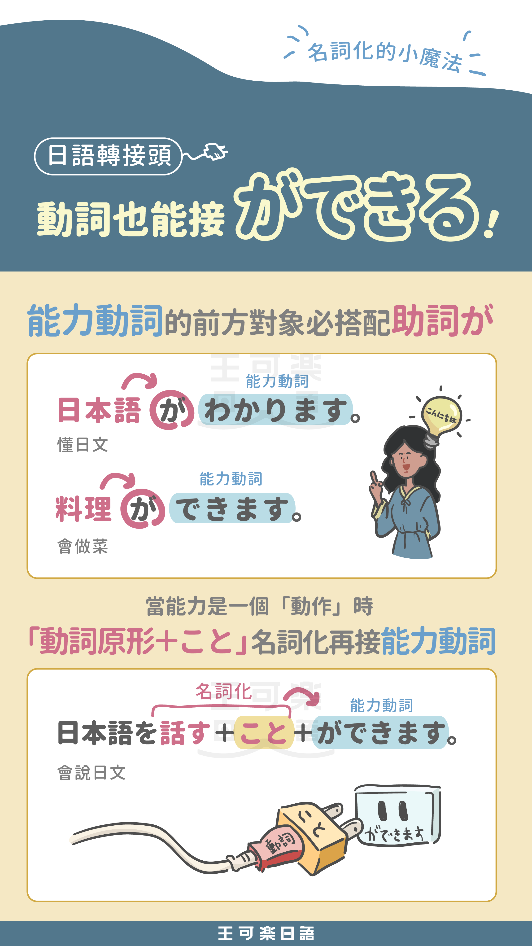 關鍵在於:能力動詞(わかります・できます)前面的對象,助詞一律用「が」,而且只能接名詞。