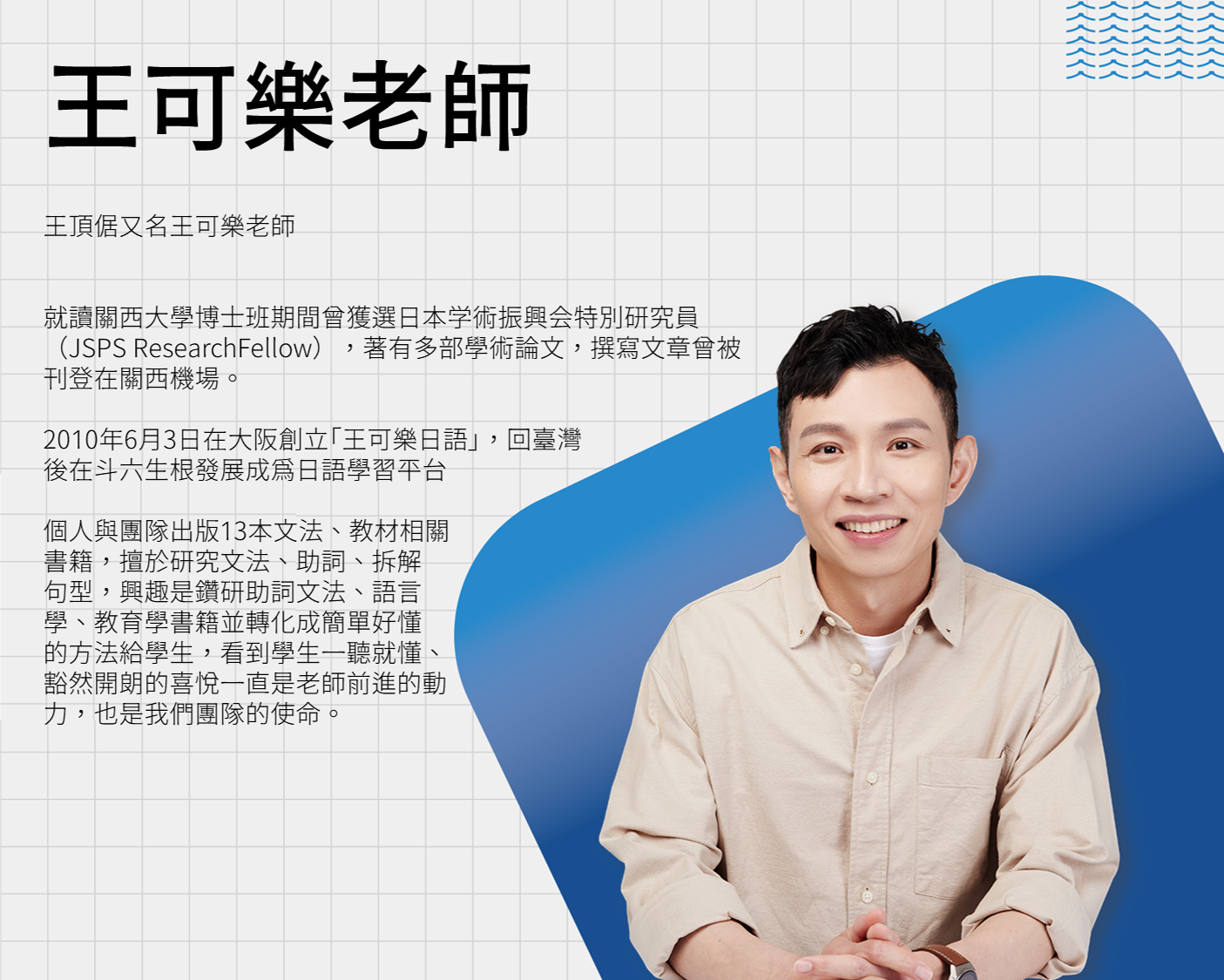 課程內容及教材著作權歸王可樂日語所有。未經授權,禁止任何形式之轉載、散布、公開播放、翻拍或改作。