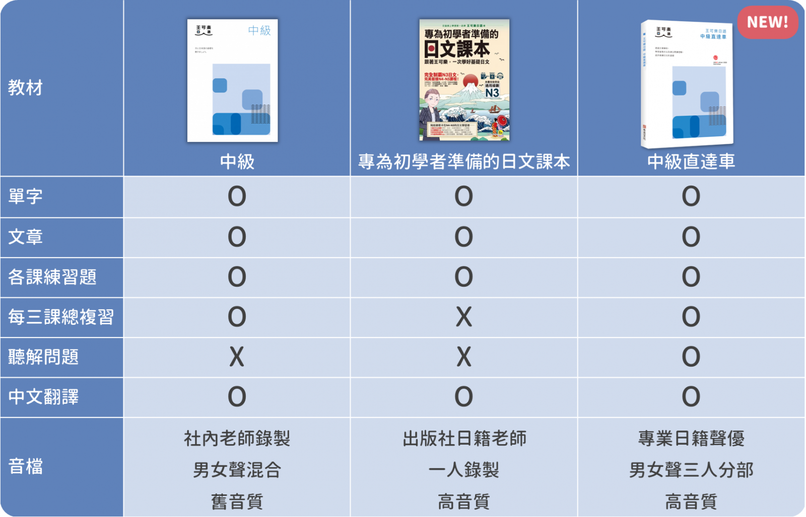 繼初級直達車後,由台日老師精心策劃、蒐集最詳盡的內容,整合精彩中高級教材,全新上市!