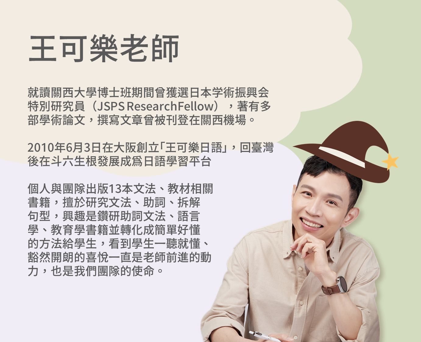 王可樂日語官網(以下簡稱本網站)是由樂欣日語股份有限公司(下稱本公司)所建置。本公司係依照本網站服務使用條款(以下簡稱「本條款」),提供本公司用戶及一般公眾使用本網站各項網路資訊服務(下稱「網站服務」)。