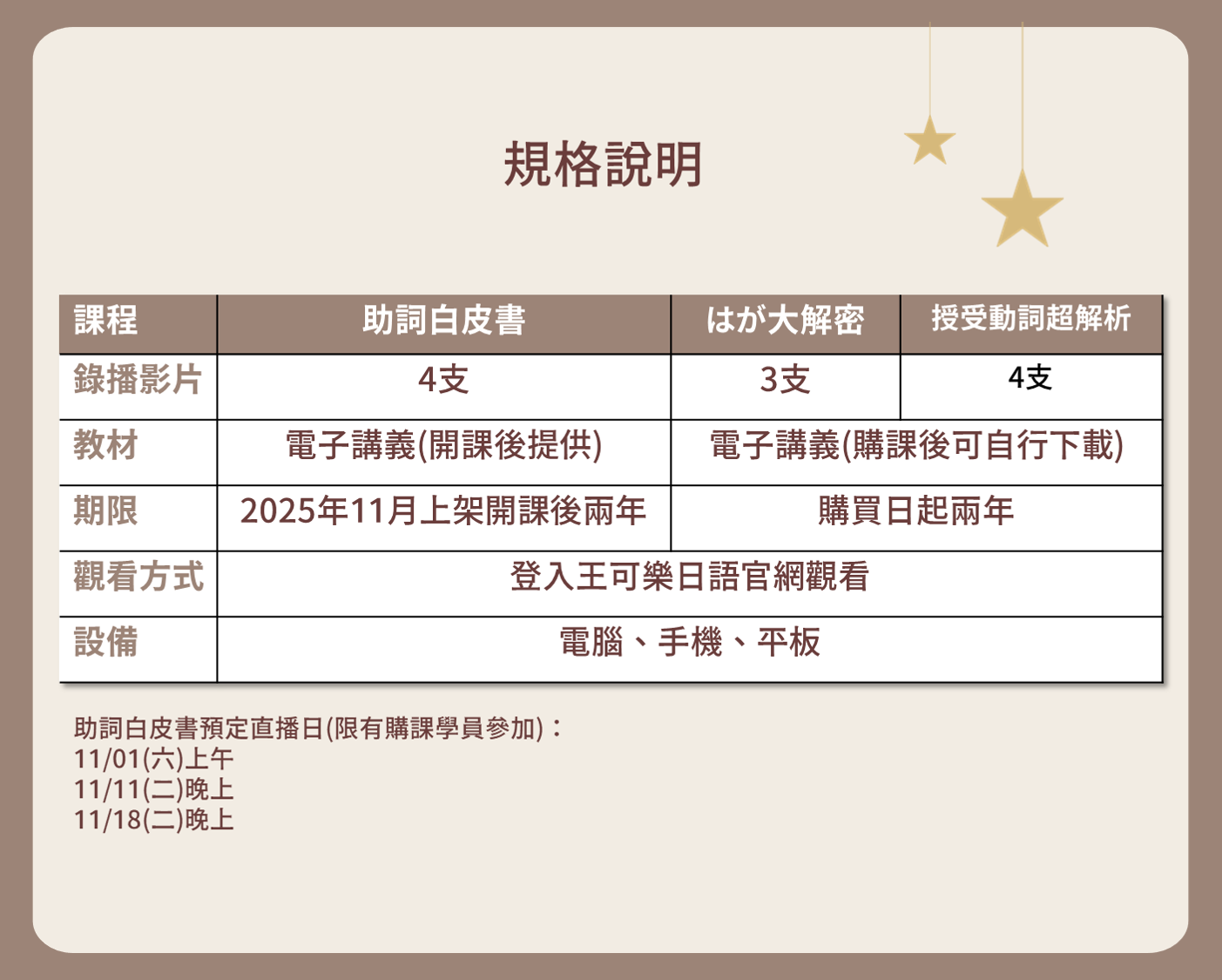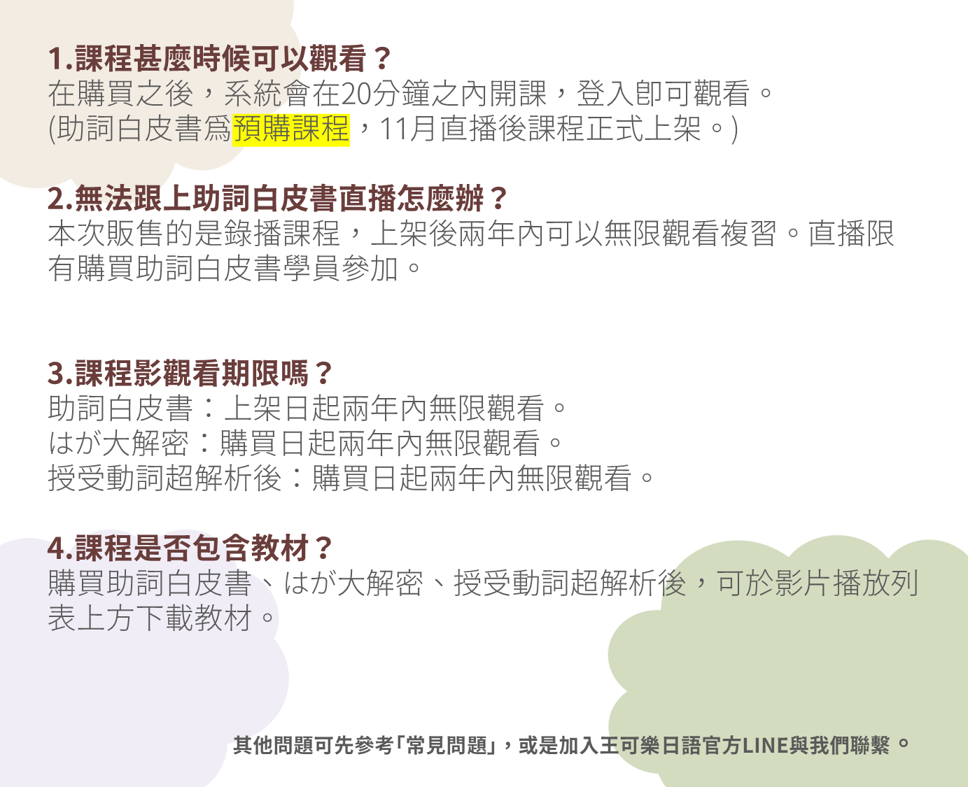 AFTEE先享後付:透過由恩沛科技股份有限公司提供之「AFTEE先享後付」服務完成的交易,您已明白並同意王可樂日語在完成本訂單之目的下,須將訂單相關資料(包含但不限於收件資料)轉予恩沛科技股份有限公司進行搜集、處理及利用,王可樂日語並會將交易相關給付請求債權轉讓予恩沛科技股份有限公司。關於個人資料處理事宜,請瀏覽AFTEE官網。未成年的使用者,請事先徵得法定代理人或監護人之同意方可使用AFTEE。