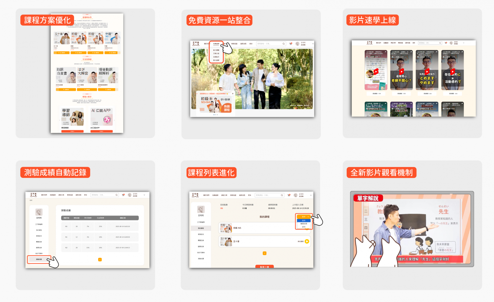 全面重新整理課程分類,直達車系列為核心,搭配學習小幫手、文法加強錠,輕鬆找到適合自己的課程路線。2.免費資源一站整合
