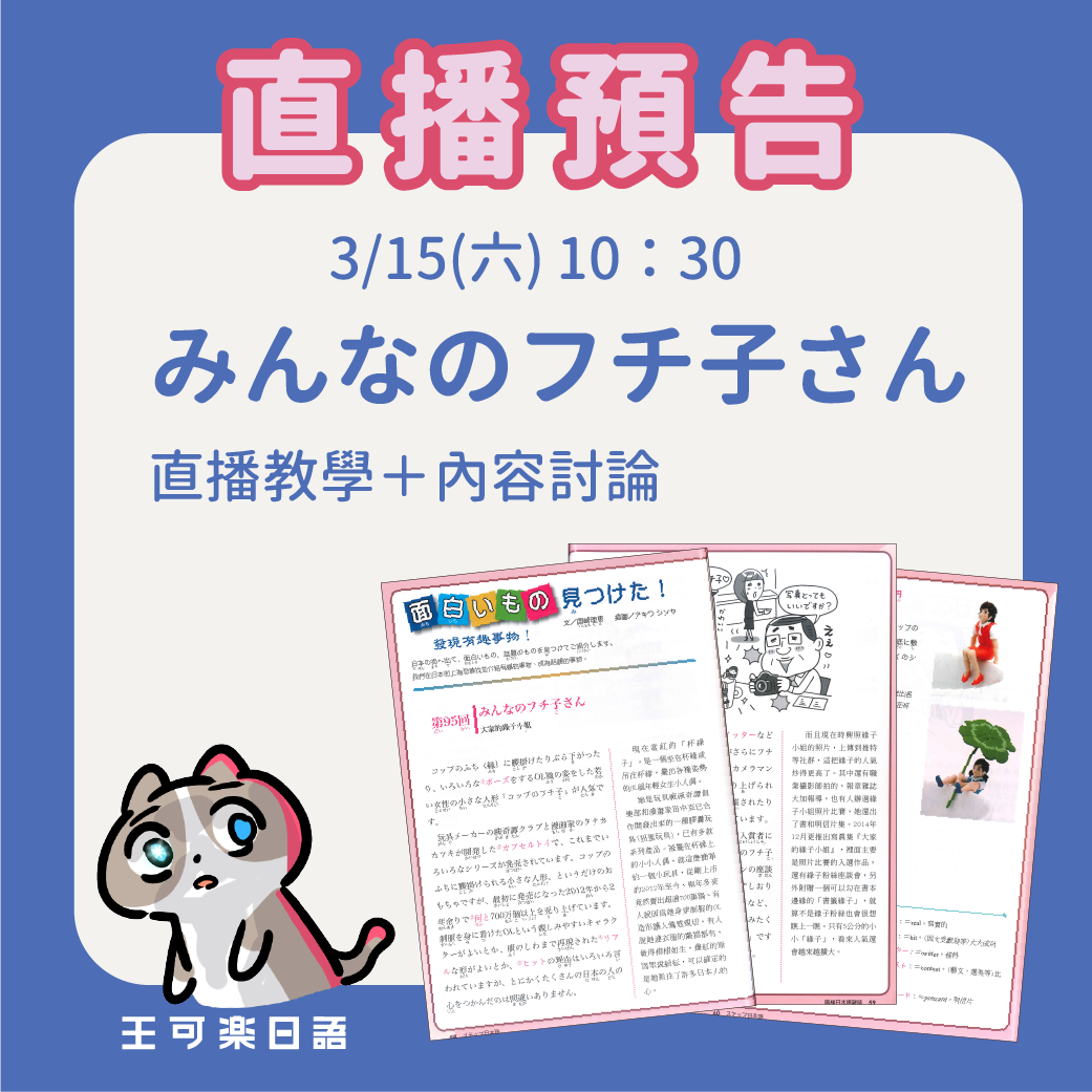 AFTEE先享後付:透過由恩沛科技股份有限公司提供之「AFTEE先享後付」服務完成的交易,您已明白並同意王可樂日語在完成本訂單之目的下,須將訂單相關資料(包含但不限於收件資料)轉予恩沛科技股份有限公司進行搜集、處理及利用,王可樂日語並會將交易相關給付請求債權轉讓予恩沛科技股份有限公司。關於個人資料處理事宜,請瀏覽AFTEE官網。未成年的使用者,請事先徵得法定代理人或監護人之同意方可使用AFTEE。